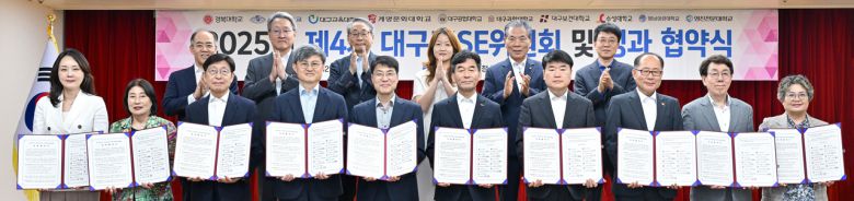 이날 협약식에는 정기 대구시장 권한대행을 비롯해 2025년 대구 라이즈 수행대학 공모로 선정된 10개 지역대학 총장 등이 한자리에 모여 대구형 라이즈 체계의 비전과 핵심목표를 함께 공유하고 공동의 성과창출을 위한 상호협력을 다짐하기 위해 마련됐다.