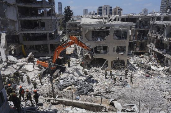 15일(현지시간) 이스라엘 군인들이 이란 미사일 공격으로 파괴된 바트얌 지역의 주거용 건물 잔해 속에서 생존자를 찾고 있다. AP 연합뉴스 |