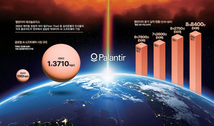 팰런티어의 실적은 어떨까요? 팰런티어가 지난 5월 발표한 1분기 실적에 따르면 매출은 전년 동기 대비 39% 증가한 8억8400만달러(약 1조2300억원)를 기록했습니다. 순이익도 지난해 1분기 1억550만달러에서 올해 1분기 2억1400만달러로 급증했죠.