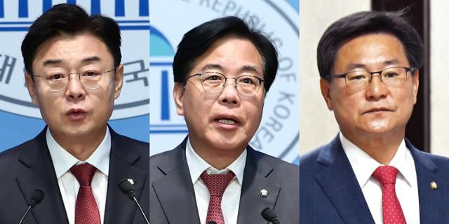 국민의힘 원내대표 선거에 출사표를 던진 김성원(왼쪽부터), 송언석, 이헌승 의원. 뉴스1·한국일보 |