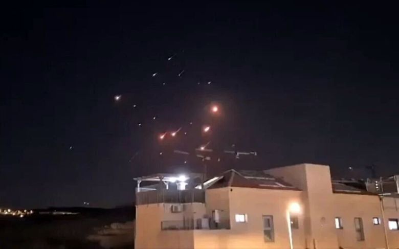 14일 밤 이스라엘 북부 하이파 지역으로 날아오는 이란 미사일을 이스라엘 방공망이 요격하는 모습. /소셜미디어 X |