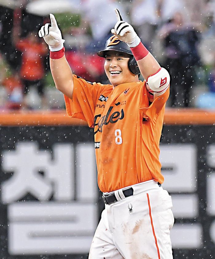그리고 노시환이 5회말 1사 1루에서 LG 두 번째 투수 이지강을 상대로 좌익선상으로 날아가는 2루타를 날렸다. 5-4. 이날 경기 결승타였다. 바로 빗줄기가 그라운드를 덮었고, 경기는 1시간 44분간 중단됐다. 그러나 이 비도 타오른 한화 기세를 꺼뜨리지 못했다.