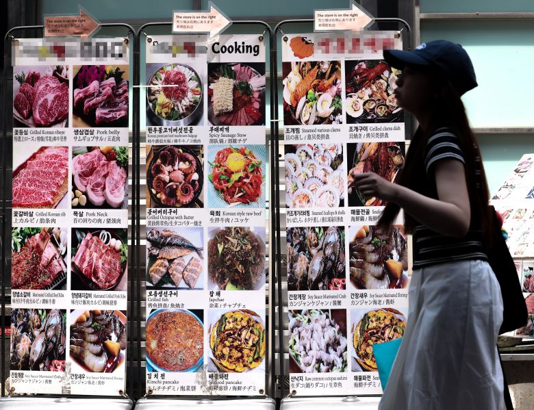 15일 서울 중구 명동의 한 음식점 앞을 한 시민이 지나가고 있다. 최근 5년간 국내 외식 물가는 약 25%나 상승했고, 특히 김밥·햄버거·자장면 등은 30% 이상 뛰었다. 한국의 음식료품 물가는 경제협력개발기구(OECD) 국가 중 스위스에 이어 둘째로 높은 수준이다. /연합뉴스 |