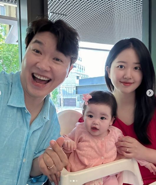 공개된 사진에는 박수홍과 아내 김다예가 딸 재이를 안고 있는 모습이 담겨 있었다. 김다예는 빨간색 원피스를 입고 늘씬한 몸매를 드러냈다. 사랑스러운 딸을 품에 안고 어느 때보다도 행복하게 생일을 맞은 모습이었다.