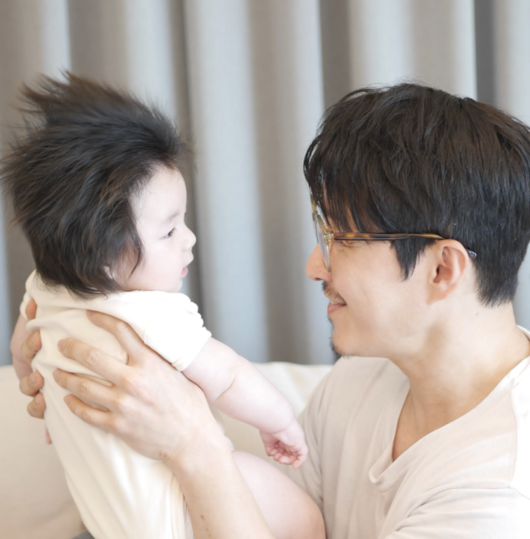 이와 함께 공개한 사진에서 심형탁은 안경을 착용한 채 아들 하루의 얼굴을 가까이 바라보며 미소 짓고 있다.