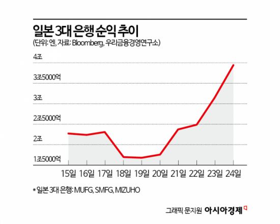 일본 주요은행 순이익 급증세