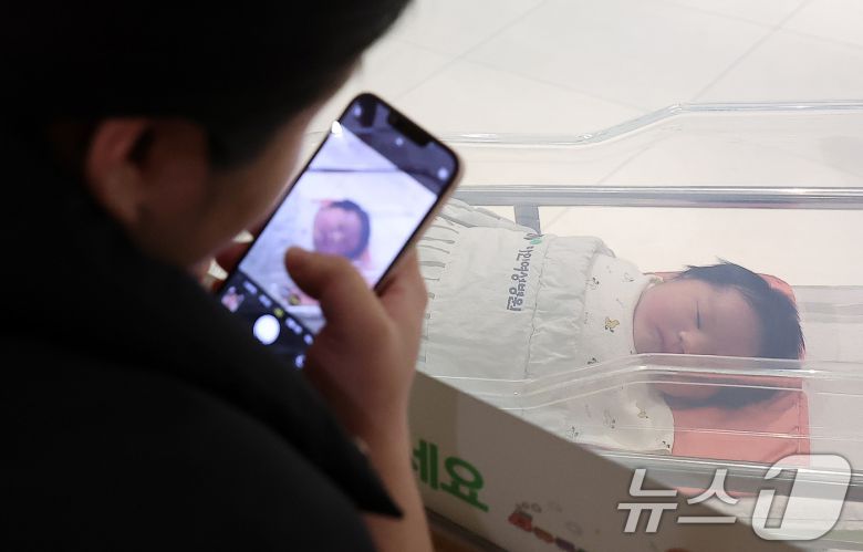 인천 미추홀구 아인병원에서 보호자들이 신생아와 면회 시간을 갖고 있다. 2025.2.26/뉴스1 ⓒ News1 김진환 기자