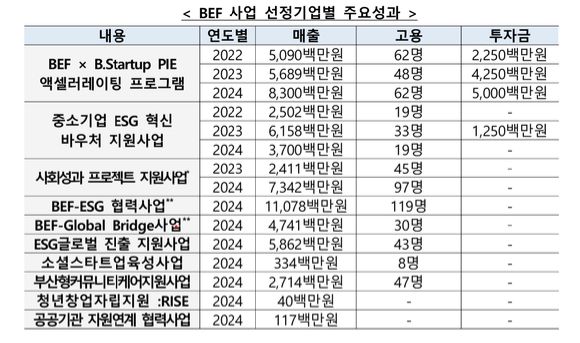 BEF는 기존 '부산사회적경제지원기금'에서 명칭을 바꿔 재편된 ESG 기반 기금으로, 한국예탁결제원을 포함한 부산 지역 9개 기관이 총 75억1000억원을 조성해 운영 중이다. 2018년부터 2022년까지 진행된 1기 사업에서는 총 116개 기업에 금융지원을, 74개사에 크라우드펀딩, 110개사에 경영컨설팅을 제공했다.