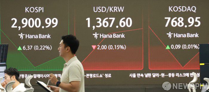 [서울=뉴스핌] 양윤모 기자 = 계속되는 이스라엘과 이란의 분쟁속 16일 오전 코스피가 전장 종가보다 6.37 포인트(0.22%) 상승하며 2,900.99로, 코스닥은 0.09 포인트(0.01%) 상승한 768.95로 시작한 가운데, 서울 중구 하나은행 딜링룸에서 직원들이 업무를 보고 있다. 서울외환시장에서 원·달러 환율은 전장 대비 2.00원 하락한 1,367.60원에 거래를 시작했다. 2025.06.16 yym58@newspim.com |