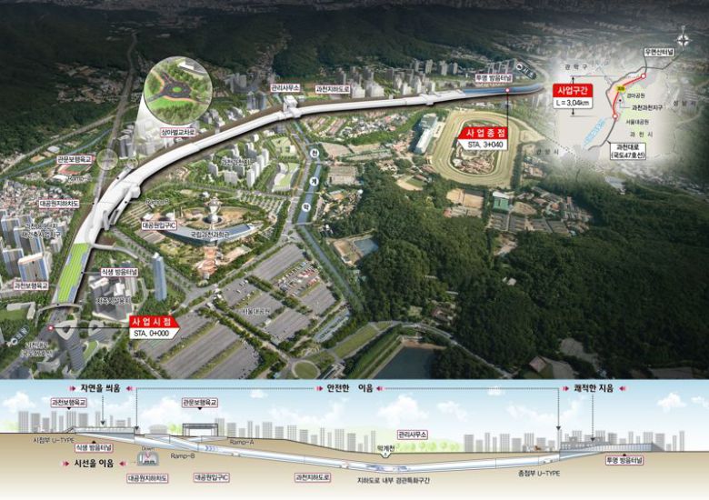 공사 주요 내용은 지하차도(2.84㎞) 1개소를 비롯해 보행육교 2개소, 방음터널 2개소, 인터체인지(IC) 및 교차로 설치 등이다. 태영건설 컨소시엄은 고가차도 구간을 지하화하고, 식생형 방음터널과 미디어글라스를 적용한 보행육교, 스마트건설 기술을 제안해 높은 기술 점수를 받았다.