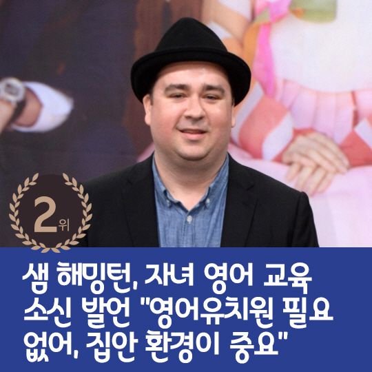 2위 : 샘 해밍턴, 자녀 영어 교육 소신 발언 "영어유치원 필요 없어, 집안 환경이 중요"