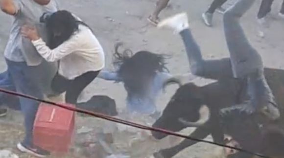 관람석으로 올라선 황소는 경기장 밖으로 뛰쳐나가 닥치는 대로 주민들을 공격했다. 주민들은 달려드는 황소에 의자를 집어던지는 등 저항했지만 황소를 막아내진 못했다. 주민들은 황소를 피하기 위해 높이 3m의 옹벽에서 뛰어내렸다. 황소 역시 옹벽 아래로 추락했지만 말짱하다는 듯 다시 일어나 주민들을 공격했다.