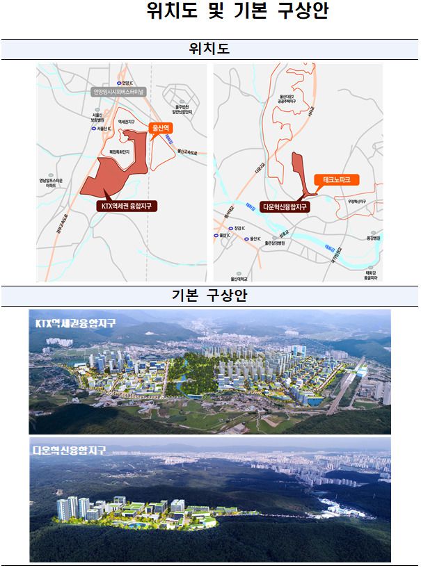 울산 도심융합특구는 기업 투자와 청년 일자리를 창출하기 위해 울산 도심에 산업·주거·문화 등 복합혁신공간을 조성하는 사업이다. KTX역세권융합지구(162만㎡)와 다운혁신융합지구(30만㎡) 2개 지구로 나눠 추진된다.