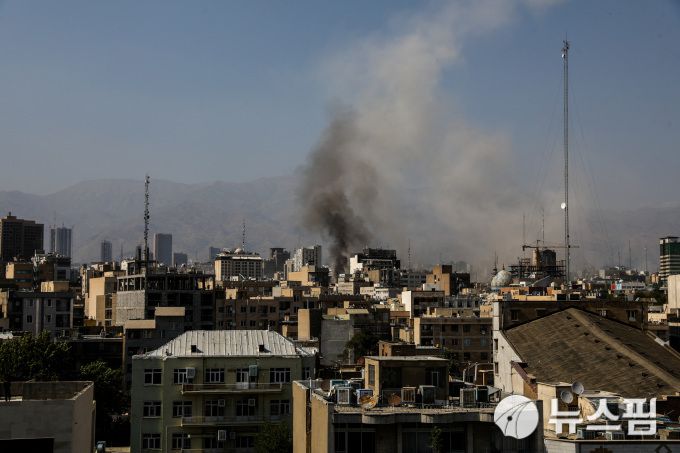 15일(현지시간) 이란 수도 테헤란에서 이스라엘의 공습 이후 폭발로 연기가 피어오르고 있다. [사진=로이터 뉴스핌] |