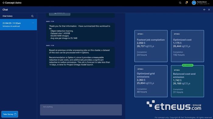 델 테크놀로지스는 AI 모델 전력 소비를 줄이고 데이터센터 운영을 최적화 할 수 있는 '콘셉트 아스트로(Concept Astro)' 플랫폼을 선보였다고 밝혔다.