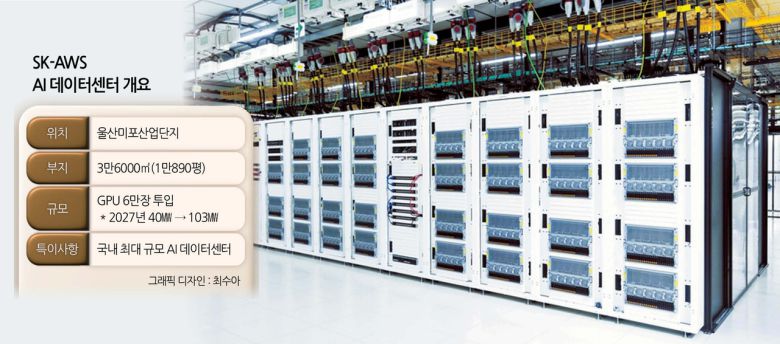 ▶카카오 6000억원 남양주·SK그룹 최대 7조원 울산…2029년 본격 가동=16일 관련 업계에 따르면 SK그룹이 아마존웹서비스(AWS)와 울산 남구에 구축하는 103㎿ 규모의 AI 데이터센터는 현재 건립을 계획 중인 국내 주요 데이터센터 가운데 국내에서 가장 크다. 그래픽처리장치(GPU) 약 6만장이 투입된다.