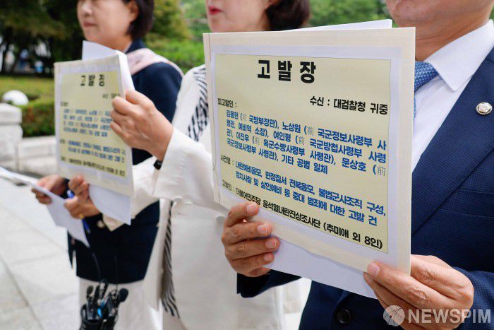 [서울=뉴스핌] 류기찬 인턴기자 = 추미애 더불어민주당 내란진상조사단장(가운데)과 박선원 의원(오른쪽), 서영교 의원이 16일 오전 서울 서초구 대검찰청 민원실 앞에서 김용현 전 국방부 장관 등에 대한 고발장 제출에 앞서 기자회견을 하고 있다. 2025.06.16 ryuchan0925@newspim.com |