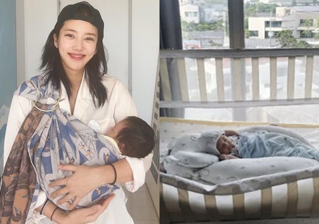 사진 속 손담비는 딸 해이 양을 품에 안고있는 모습. 천사처럼 곤히 잠든 해이 양의 모습이 엄마 미소를 자아낸다.