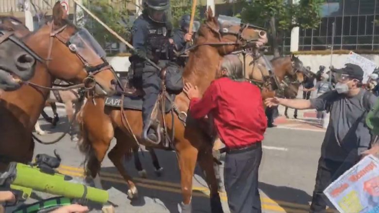 미국 전역에서 트럼프 반대 시위가 거세지고 있습니다. 현지시간 14일 트럼프의 생일 열병식을 기해 미국 전역에서 열린 '노킹스 시위'에는 수백만 명이 참여했습니다. 시위대를 진압하기 위해 기마경찰대도 출동해 아찔한 상황을 연출했습니다.