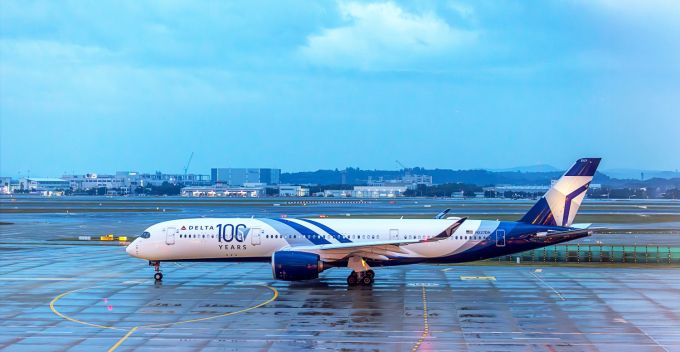 인천에서 운항을 시작한 인천~솔트레이크시티 직항 노선 델타항공 항공기의 모습으로, 창립 100주년을 기념해 공개된 특별 도색이 적용됐다. [사진=델타항공]
