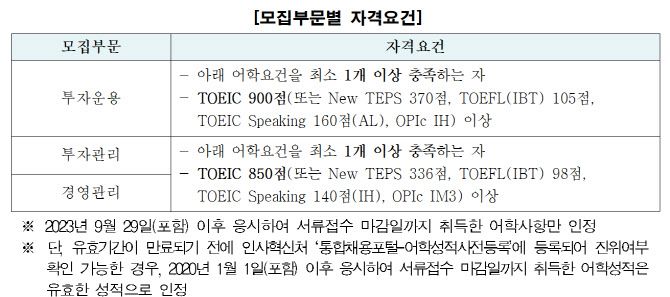 투자운용·투자관리·경영관리 등 8명 선발 예정