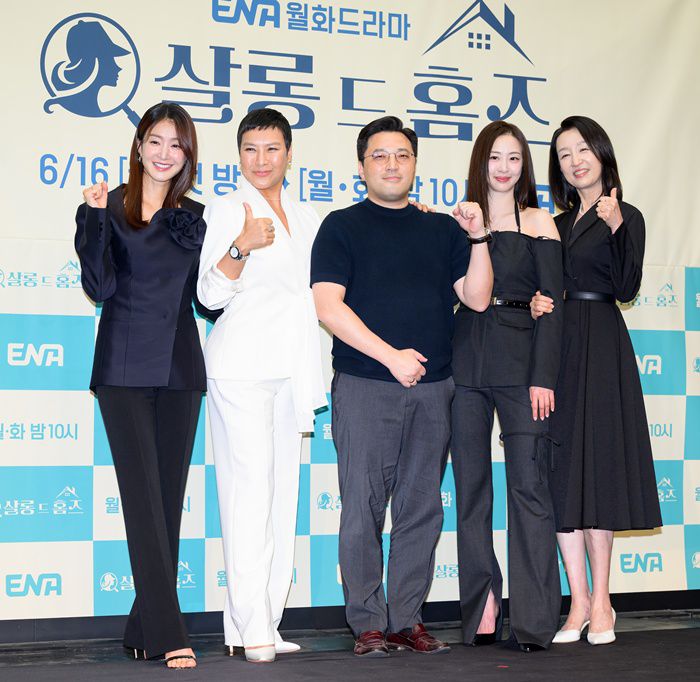 ENA 새 월화드라마 '살롱 드 홈즈' 제작발표회가 오늘(16일) 오후 2시 서울 마포구 상암동 스탠포드 호텔에서 열렸다. 연출을 맡은 민진기 감독과 배우 이시영, 정영주, 김다솜, 남기애가 참석해 작품에 대해 소개했다.