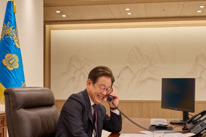 이재명 대통령이 10일 서울 용산구 대통령실 청사 집무실에서 시진핑 중국 주석과 통화를 하고 있다. 대통령실 제공