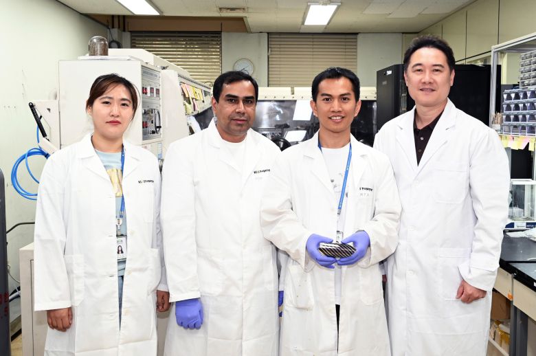 연구팀 사진. 왼쪽부터 김소연 책임연구원, Jahandar Muhammad 선임연구원, Muh Fadhil Albab 박사과정 학생연구원(논문 제1저자), 임동찬 책임연구원