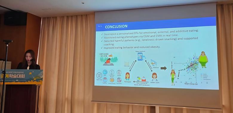 수상 연구는 “Multi-Dimensional Architecture-Based Personalized Digital Therapeutic Development and Clinical Validation for Eating Behavior Intervention in Obesity”라는 제목으로, 연속혈당측정기(CGM) 데이터를 활용해 식사, 감정 상태, 활동량 등을 분석하고, 이를 바탕으로 개인의 식행동 심리 유형(감정적 섭식, 외부 자극 반응형, 음식중독형 등)에 맞춘 맞춤형 디지털 코칭 프로그램을 개발 및 임상 검증한 내용이다.