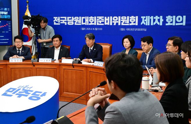 박지혜 민주당 전국당원대회준비위원회(전준위) 대변인은 16일 국회에서 열린 전준위 1차회의를 마치고 기자들과 만나 이 같은 내용을 의결했다고 밝혔다.