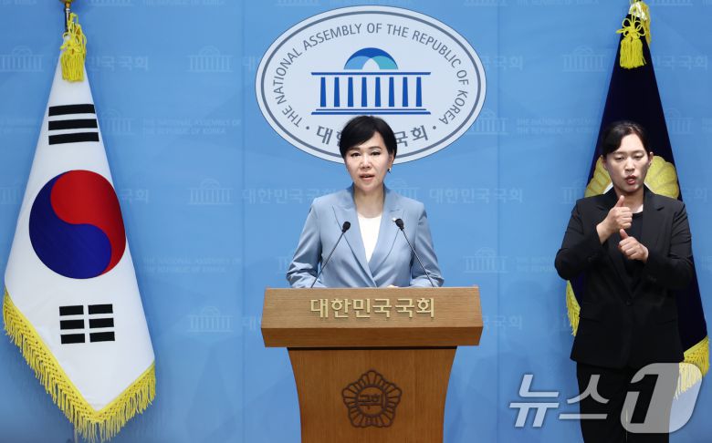 전현희 더불어민주당 의원이 16일 서울 여의도 국회 소통관에서 감사원 검찰 수사의뢰 관련 기자회견을 하고 있다. 2025.6.16/뉴스1 ⓒ News1 김민지 기자 |