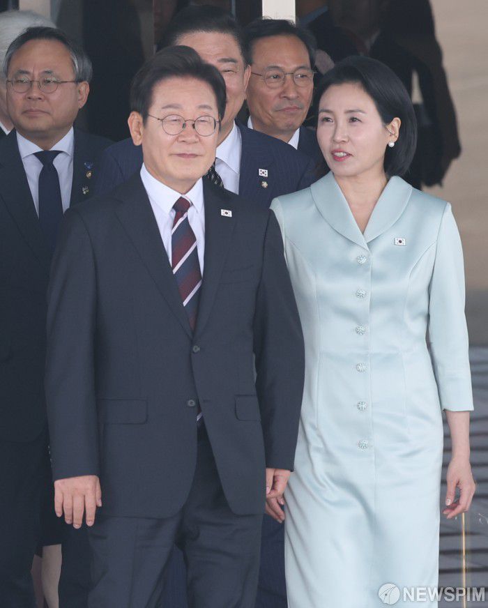 [성남=뉴스핌] 김학선 기자 = 주요 7개국(G7) 정상회의에 참석하는 이재명 대통령과 김혜경 여사가 16일 오후 경기도 성남시 서울공항에서 첫 해외 순방길에 오르고 있다. 이 대통령은 정상회의 참석을 계기로 미국과 일본 등 주요국 정상과 양자 회담을 가질 계획이다. 2025.06.16 yooksa@newspim.com
