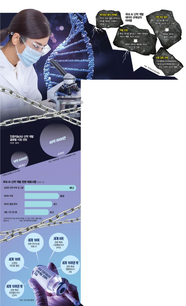 국내에서 관련 산업이 정체되고 있는 것은 고품질 데이터에 접근하지 못하고 있기 때문이다. 업계 관계자는 “신약 개발에 데이터를 활용하려면 약물 반응 정보가 포함된 데이터 생산이 필요하지만 국내에서는 폐쇄된 환경에서만 관련 데이터 접근이 가능하고 연구 외 목적으로 데이터를 구축한 사례가 많아 활용도가 떨어진다”며 “해외에서 신약 개발을 위해 생산한 데이터는 자국 연구자가 먼저 활용한 후 공개돼 혁신 신약 개발을 위한 가치는 낮아진다”고 지적했다.