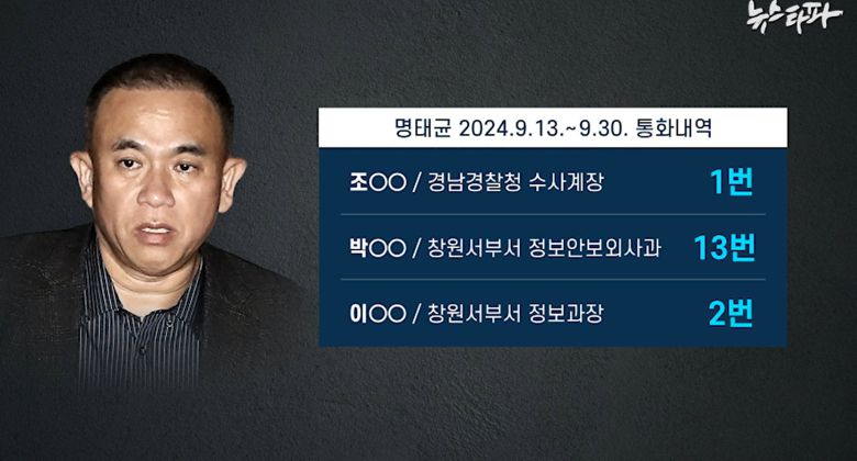 '명태균 게이트'를 수사하는 검찰이 명태균 씨가 지역 경찰 간부들과 부적절한 거래를 한 정황을 파악하고도 수사를 하지 않은 것으로 확인됐다. 지난해 9월 명태균 게이트가 시작됐을 때도 명 씨는 경찰 간부들과 수차례 통화했다. 이 중에는 경무관 계급의 고위 경찰도 포함됐다.