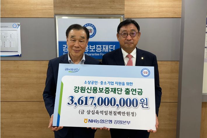 NH농협은행 강원본부는 16일 경기 침체와 고물가 여파로 고통을 겪고 있는 강원지역 중소기업과 소상공인들을 위해 강원신용보증재단에 36억 1700만 원의 출연금을 전달했다.