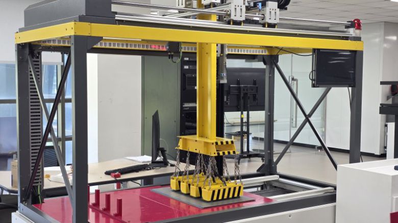포스코DX가 아이작 심으로 구현한 포스코스틸리온 도금공장 크레인 시뮬레이션 화면. 후판 크레인 무인화 연구를 위한 데모 설비 포스코DX 제공 |