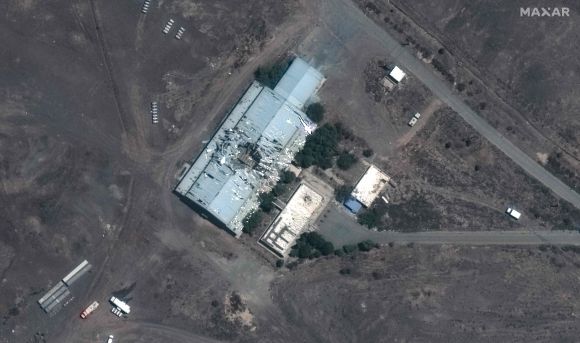 ‘정밀타격’ 받은 이란 미사일 시설 - 이스라엘과 이란 간 무력 충돌 사흘째인 15일(현지시간) 이란 테헤란 남서부 비드카네의 미사일 시설 지붕이 이스라엘군의 공습으로 가운데가 뚫린 채 파손돼 있다. AFP 연합뉴스 |