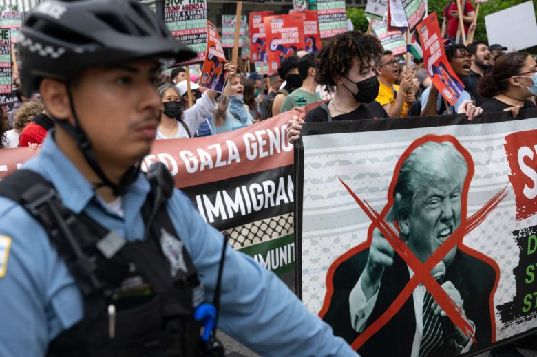 지난 12일(현지시간) 미국 일리노이주 시카고에서 도널드 트럼프 행정부의 이민자 추방에 항의하는 시위대가 거리를 행진하고 있다. AFP연합뉴스 |