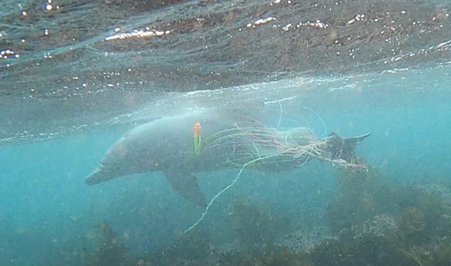 ▲폐어구에 걸린 남방큰돌고래 '종달이'ⓒ핫핑크돌핀스 |