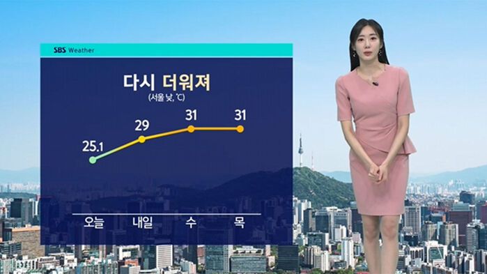 서울이 29도 예상되고 모래와 글피는 31도까지 오르겠습니다.