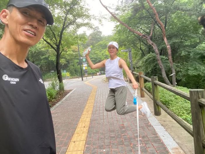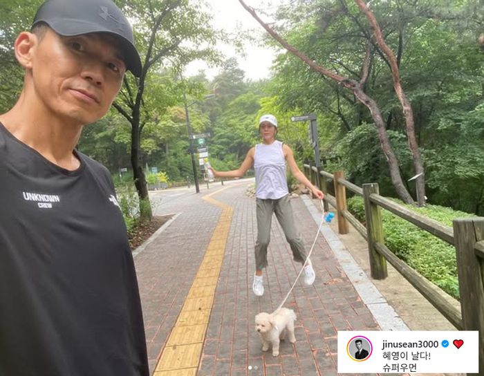 션은 16일 자신의 SNS에 “남산 1회전. 드디어 혜영이가 달리기 시작했다!”는 글과 함께 사진을 게시했다. 그는 “철인 남편과 함께 사는 체력과 힘을 겸비한 혜영이. 모두 긴장하세요”라고 덧붙이며, 푸른 나무가 우거진 길을 힘차게 달려 나가는 정혜영의 뒷모습을 공개했다.