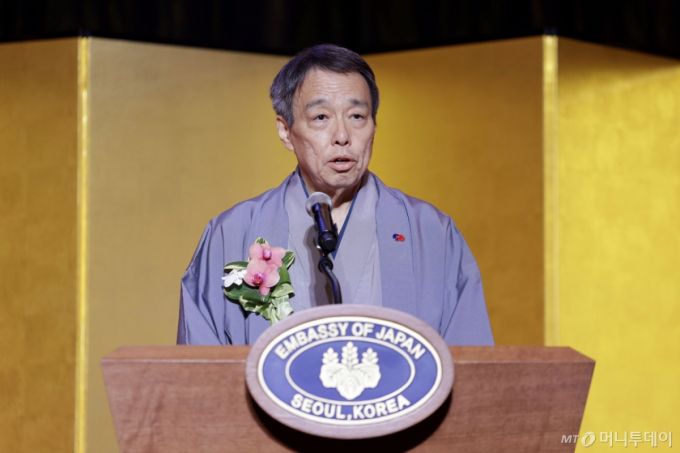 미즈시마 고이치 주한일본대사가 16일 서울 중구 롯데호텔에서 열린 주한일본대사관 주최 한일국교정상화 60주년 행사에서 인사말을 하고 있다. / 사진=뉴시스 |
