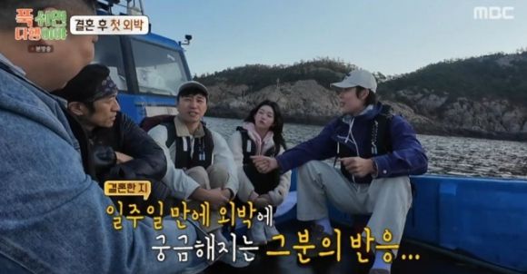 이날 결혼한지 일주일 된 김종민은 첫 외박이라며 "허락을 흔쾌히 하지는 않았다. 신혼인데 왜이렇게 나가냐고 하더라"고 아내의 반응을 전했다.