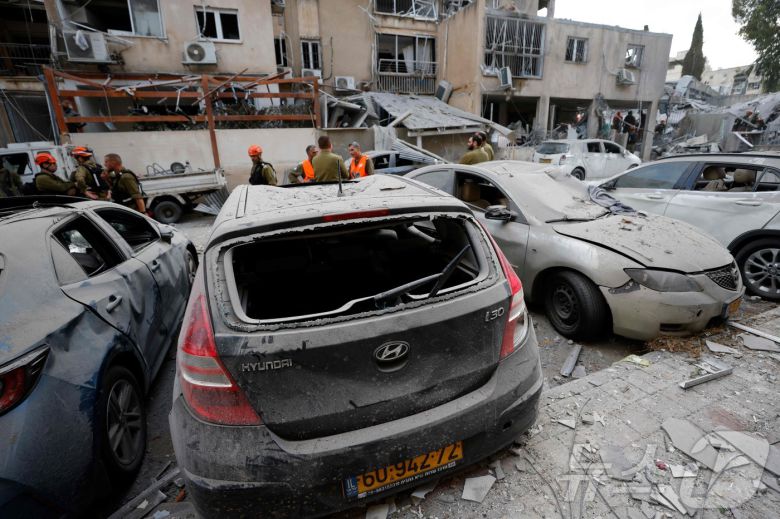 16일(현지시간) 이란의 미사일 발사로 이스라엘 텔아비브의 건물들과 차량들이 큰 피해를 입은 가운데 소방 대원들이 비상 대응을 하고 있다. 2025.06.16 ⓒ AFP=뉴스1 ⓒ News1 최종일 선임기자 |