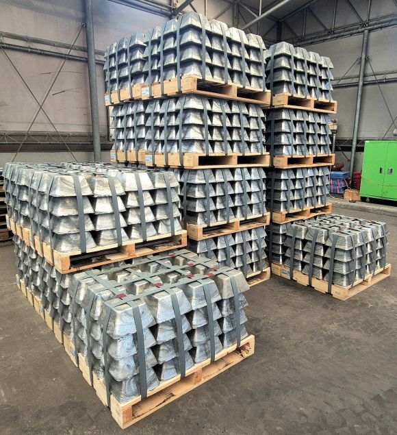 고려아연 온산제련소 출하장에 안티모니 잉곳(덩어리)들이 쌓여있다. 고려아연 제공