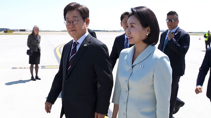 이재명 대통령 부부가 현지 시각으로 낮 12시, 우리 시각 새벽 3시, 캐나다 캘거리 공항에 도착했습니다.
