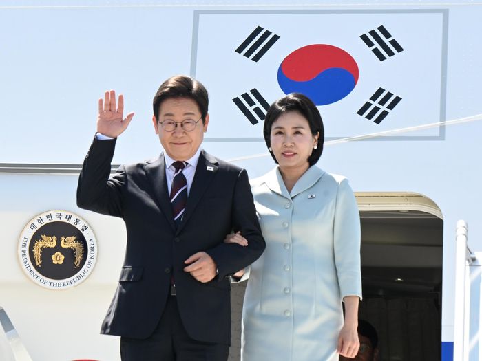 이재명 대통령과 김혜경 여사가 16일 (현지시간) G7 정상회의에 참석하기 위해 캘거리공항에 도착해 환영객들에게 손을 흔들고 있다. 캘거리/김호영기자 [ⓒ 매일경제 & mk.co.kr, 무단 전재, 재배포 및 AI학습 이용 금지]이 기사의 카테고리는 언론사의 분류를 따릅니다.0공유하기