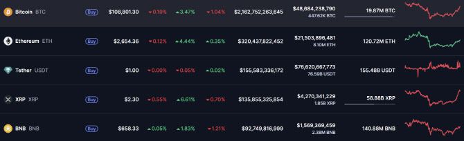 가상자산 시세.(자료=코인마켓캡 사이트 갈무리) |