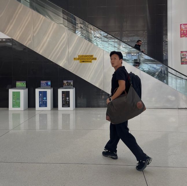 사진 속 진태현은 공항에서 커다란 가방을 든 채 걸어가는 모습이다.