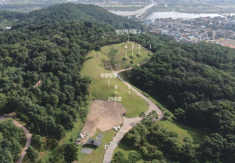 공주 무령왕릉과 왕릉원 전경. [국립부여문화유산연구소] |